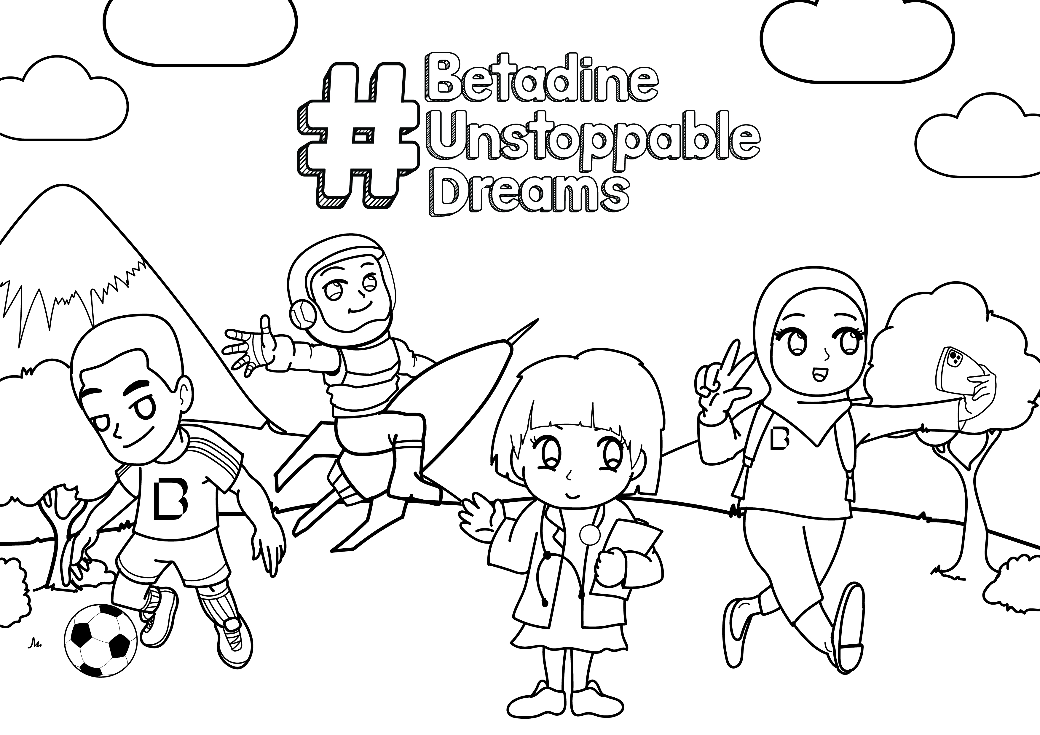 Upload hasil karya mewarnai ke instagram, tag @betadineindonesia sertakan hastag #BetadineUnstoppableDreams #JanganBerhenti